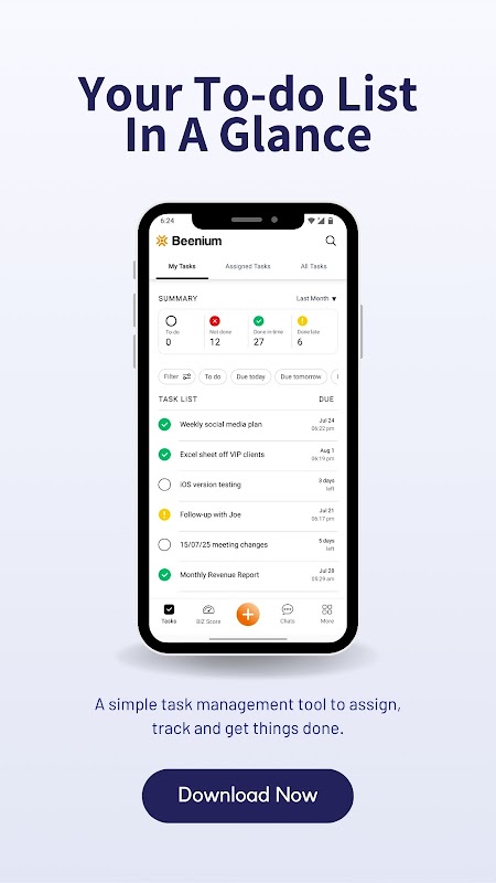 Beenium은 앱 스토어, 플레이 스토어, 웹에서 사용할 수 있는 간단하면서도 강력한 작업 관리 및 위임 도구입니다. 또한 직원, 팀, 그리고 회사 전체를 위한 포괄적인 성과 측정 및 관리 솔루션이기도 합니다.