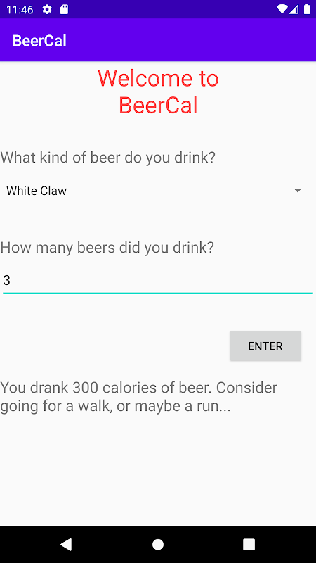 Had a long night out last night and wondering how many Calories you had to drink? BeerCal was made to help you track how many Calories you have while drinking so that you can work them off the next day! BeerCal is free to download and use! Remember, drink responsibly!