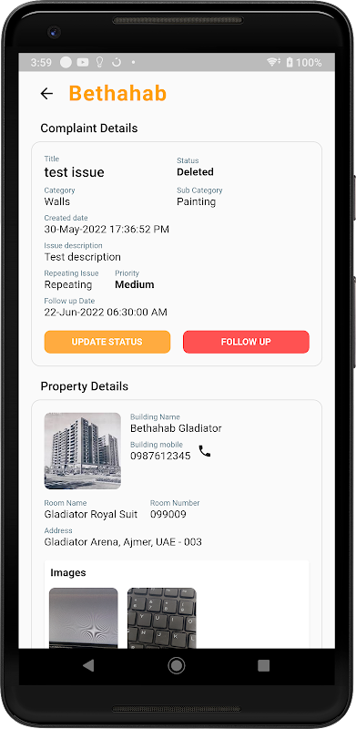 티켓, 유지 관리를 추적하기 위한 Bethahab 그룹 세입자 및 직원을 위한 앱