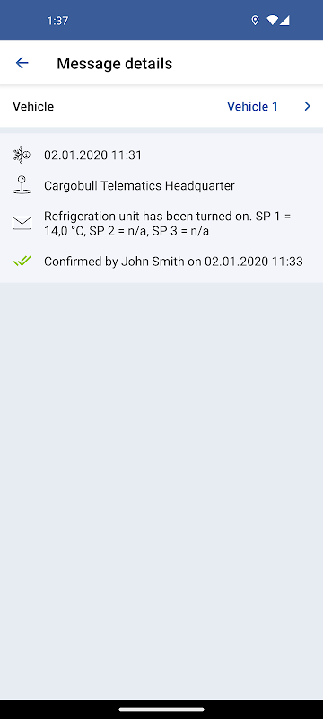 실시간 상태 데이터 및 경고 메시지를위한 예고편 텔레매틱스 앱