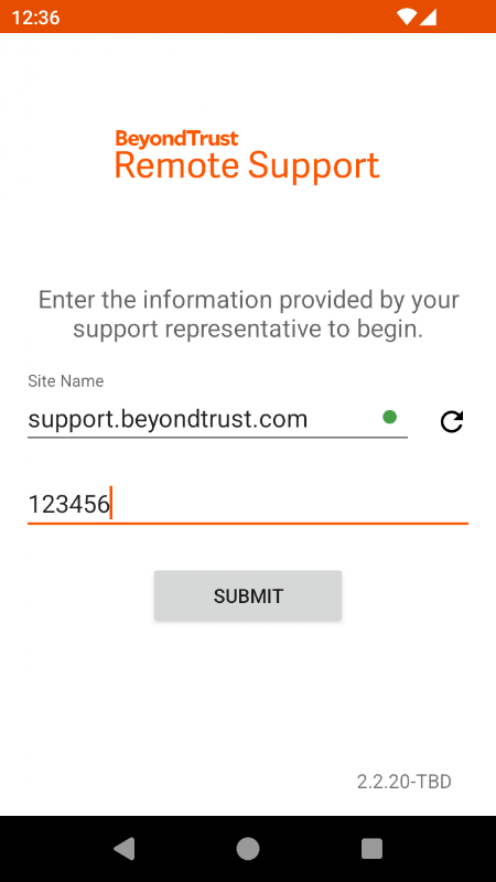 참고: BeyondTrust Android 고객 클라이언트는 버전 19.1 이상의 기존 BeyondTrust 설치 및 신뢰할 수 있는 CA 서명 인증서가 있는 지원 사이트와 작동합니다.
