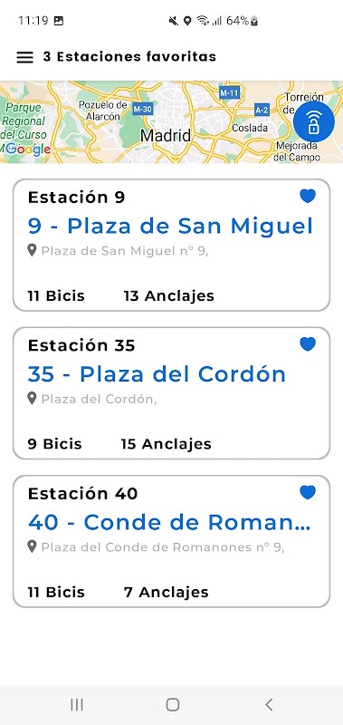 Nuevo mapa: ahora muestra la disponibilidad en función de tu estado (bicicletas antes de iniciar un viaje y anclajes si estás en el transcurso de un viaje) y también las bicis sin anclar cerca de la estación, representadas con un +.