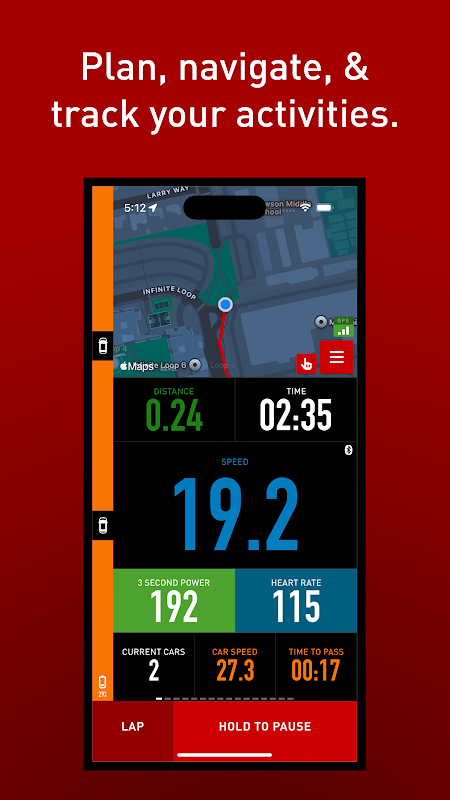 Garmin Varia, Bryton Gardia, Giant Recon, Magicshine SEEME 레이더 통합 기능을 통해 뒤에서 오는 차량의 움직임을 확인하세요. 시각 및 청각 알림과 "차량 속도" 및 "추월 시간"과 같은 지표를 통해 반응할 시간을 확보하여 사고를 예방하고 전반적인 자전거 라이딩 경험을 향상할 수 있습니다.