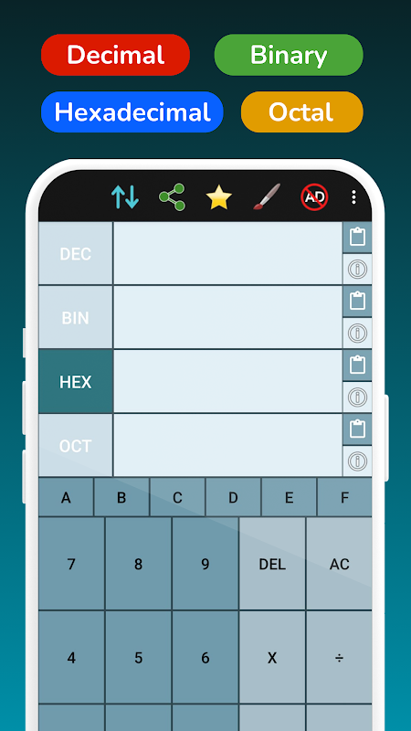 -추가 : 2 진수와 10 진수 또는 16 진수와 8 진수를 추가합니다. 이 숫자 체계를 다른 체계로 쉽게 변환하십시오 !!! 십진수를 이진 변환기 계산기로 사용하십시오.