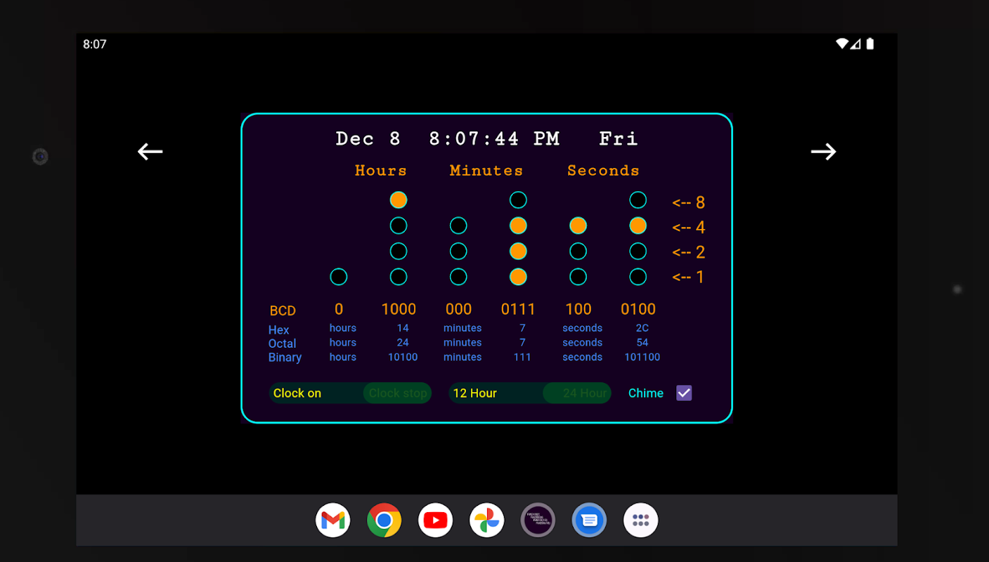 4개의 기수 유형 Base-2, Base-8, Base-10, Base-16을 사용하는 이진 시계 및 계산기