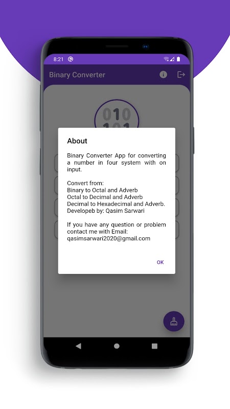 입력이 있는 네 가지 시스템의 숫자를 변환하기 위한 이진 변환기 앱.