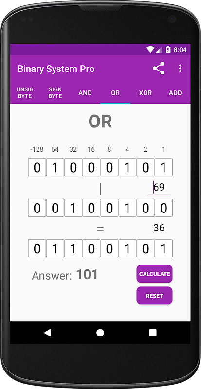 이진 시스템 Pro는 이진 시스템, 이진 코드를 배우기위한 간단한 도구입니다.