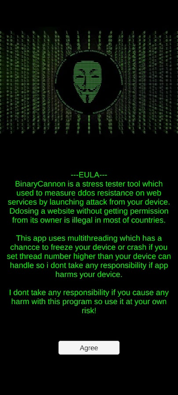 모바일용 BinaryCannon ddos 테스터 도구의 데모 버전입니다. 앱을 사용하면 장치에서 ddos 공격을 시작하여 웹사이트에서 ddos 저항을 측정할 수 있습니다.