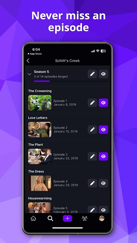 - 쇼 목록으로 프로필을 만드세요: Binging, Want to Binge, Binged.