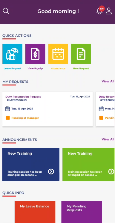 Binzagr Amerni 모바일 앱은 이동 중에도 HR 작업을 관리하기 위한 원스톱 솔루션입니다. 직원, 라인 관리자 및 HR 팀을 위해 설계된 이 앱은 급여명세서 보기, 휴가 요청 제출, 출석 추적, 개인 및 재무 데이터 액세스, 승인 관리 등의 필수 서비스에 대한 안전하고 직관적인 액세스를 모두 모바일 장치에서 제공합니다.