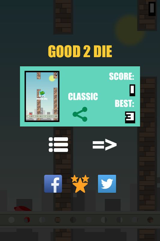Tap anywhere on the screen to make the bird flying and pass through brick walls in the city.