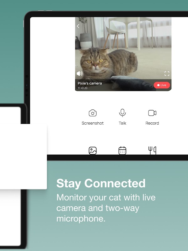 각 BistroCat 급이기는 내장형 카메라와 마이크, LED 알림, 편리한 발판을 갖추고 있어 급식 경험에 세심한 손길을 제공합니다.