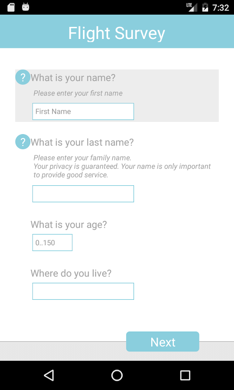 For online surveys it is required to have an internet connection during the duration of the survey, since the survey is running on a Blaise server park in this case. The app sends the answers to the questions to the server and the server calculates a response based on the given answers and the rules and checks that have been defined for the survey. The response is send back to the app and displayed to the user.