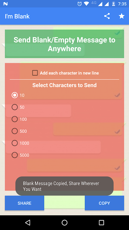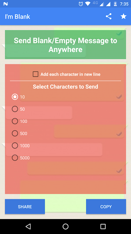 - 당신은 10 자에게 빈 메시지를 보낼 수 있습니다.