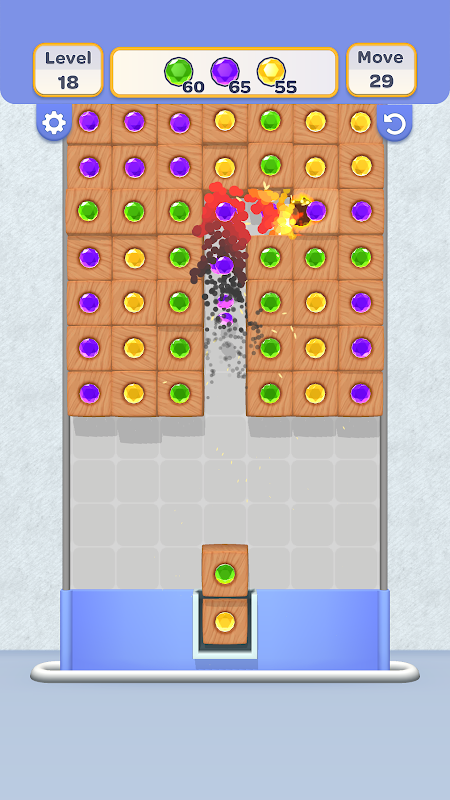 * 배치한 블록과 같은 색의 블록을 모아 목표에 도달하세요.