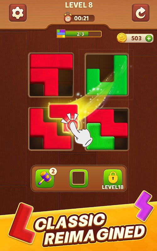 새로운 클래식 모드: 블록을 배치하고 줄을 채워 전략적으로 레벨을 클리어하세요.