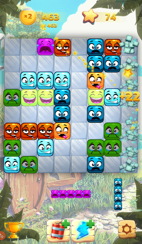 - shapes onto the grid in order to create vertical or horizontal lines to blast and get points and starts.
