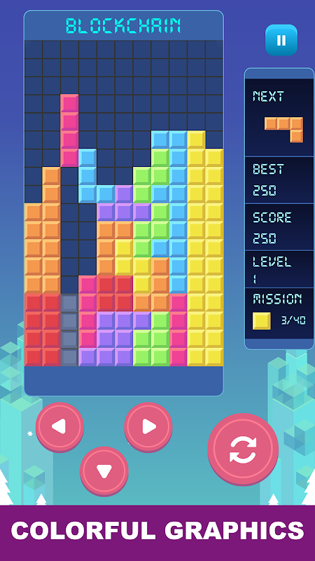 - Use Right, Left, Down or Rotate button to move blockchain.