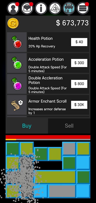 블록은 캐릭터의 공격 속도에 맞춰 자동으로 공격합니다. 블록을 탭하여 수동으로 깨뜨릴 수도 있습니다.