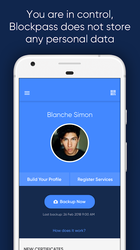 After Blockpass receives the data and hashes it, it is completely erased from the Blockpass servers. From that point forward, user data only exists on the mobile phone of the user and nowhere else until he or she decides to share it with third-party service providers, e-merchants and financial services, giving the user complete control over their personal data.