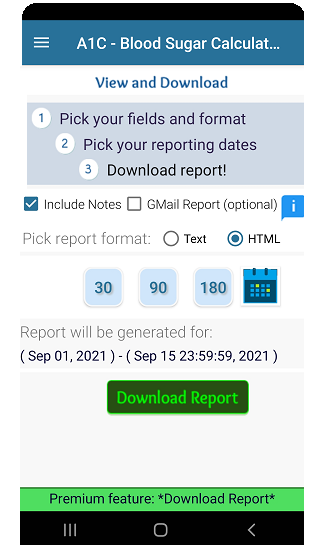 • 평균 및 추세 추적 - 미리 설정된 기간(30일, 90일, 180일) 또는 사용자 지정 날짜에 대한 평균 A1C를 확인합니다.