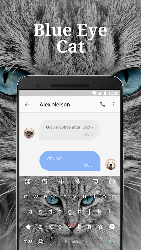 Blue Eyes Cat Keyboard Theme makes your keyboard fancy and cool!