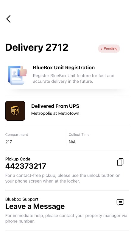 BlueBox는 소포 수령 경험을 단순화하도록 설계된 스마트 소포 보관함입니다. BlueBox가 포함된 건물의 거주자로서 귀하의 소포는 24시간 연중무휴로 소포를 픽업할 수 있는 동시에 도난으로부터 항상 안전합니다. BlueBox 상주 앱은 다음과 같은 기능을 제공합니다.
