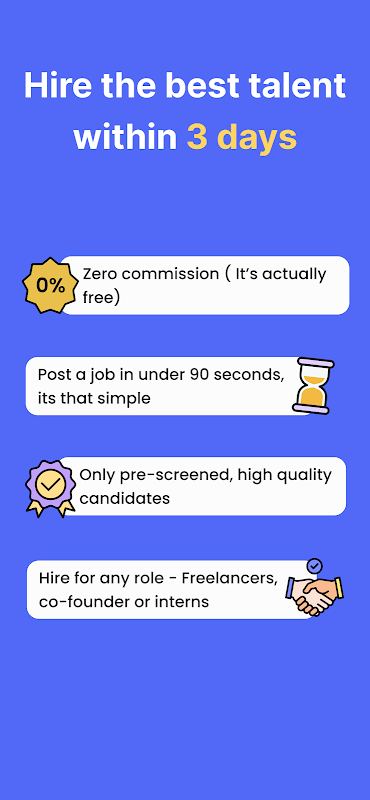 💡훌륭한 인재 채용: 가장 똑똑한 인재 풀 중 하나를 활용하세요. 기술, 디자인, 마케팅 등 몇 시간 내에 일할 멋진 사람들을 찾을 수 있습니다.