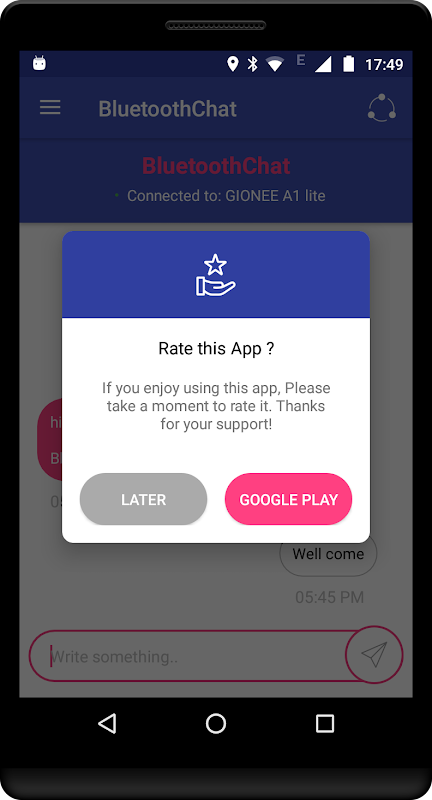 이 두 번째로 두 개의 휴대 전화를 연결하는 블루투스를 통해 최고의 채팅 안드로이드 앱이며 환경에 따라 약 100 미터의 범위에서 작동합니다.
