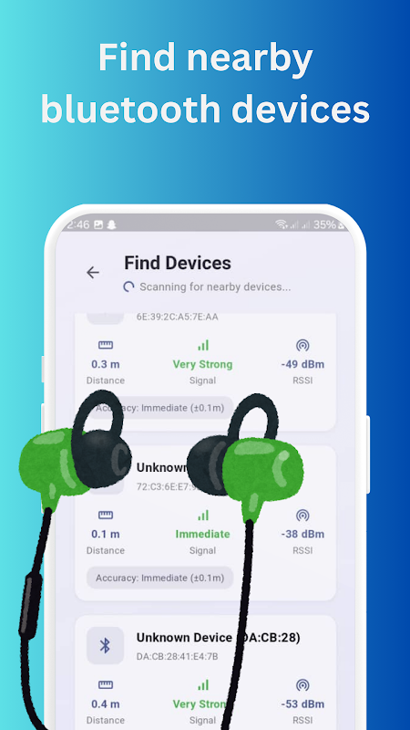 - 내 장치 찾기 옵션에서 장치 위치 범위 및 MAC 주소에 대한 세부 정보와 함께 사용 가능한 모든 Bluetooth 장치를 가져옵니다.