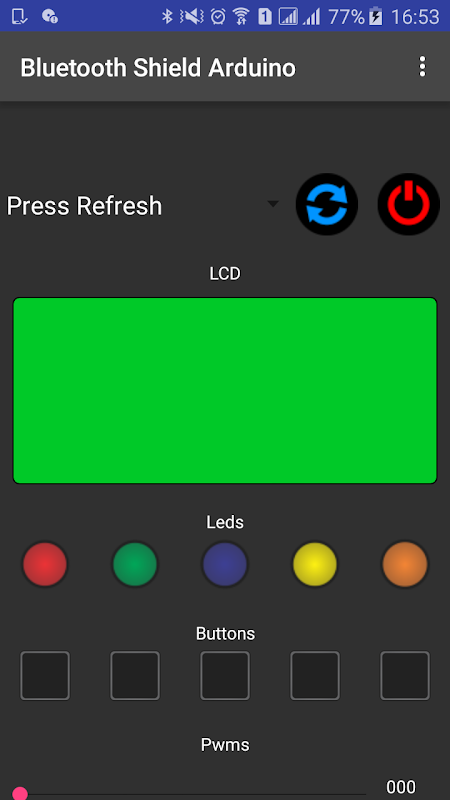 Através de conexão Bluetooth, você pode usar o seu dispositivo Android como uma shield arduino para visualização e controle de pinos do Arduino, incluindo os pinos pwm.