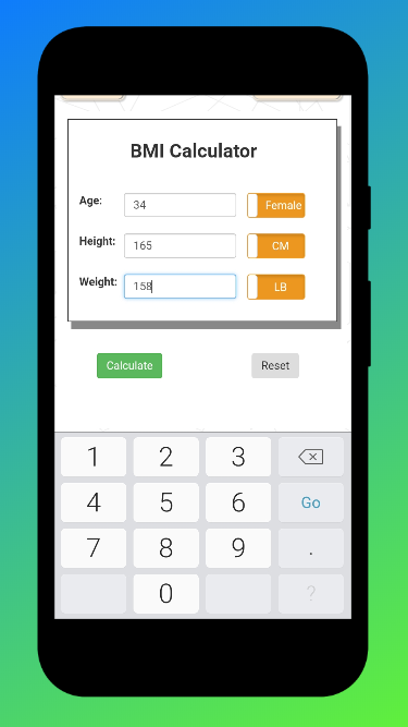 This BMI Calculator build with global bmi formula. After calculate your BMI you will get also a bmi table in the result set.