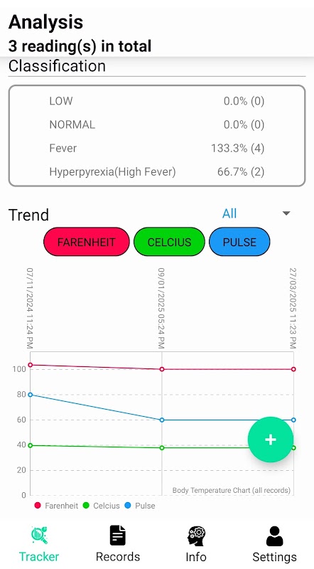 사용자는 차트 형식으로 데이터를 볼 수 있으며 나중에 통계를 모니터링할 수 있습니다. 사용자는 정보 섹션을 따라 건강하고 더 나은 삶을 누릴 수 있습니다. 이 발열 앱은 체온을 빠르고 쉽게 추적할 수 있도록 설계 및 개발되었습니다.