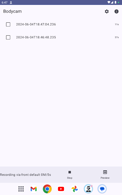 휴대폰 카메라를 바디캠으로 바꿔 추억이나 보안을 위해 동영상을 녹화하세요.