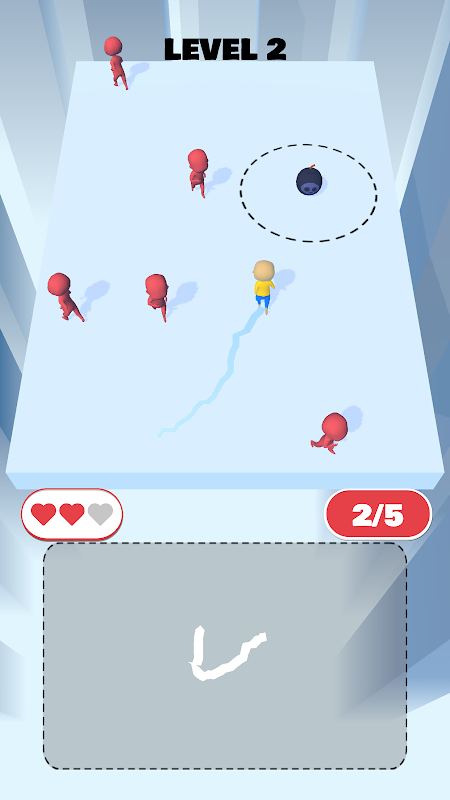 선을 그어 피하고 폭탄 구역으로 드래그하고 BoooMMmm ...