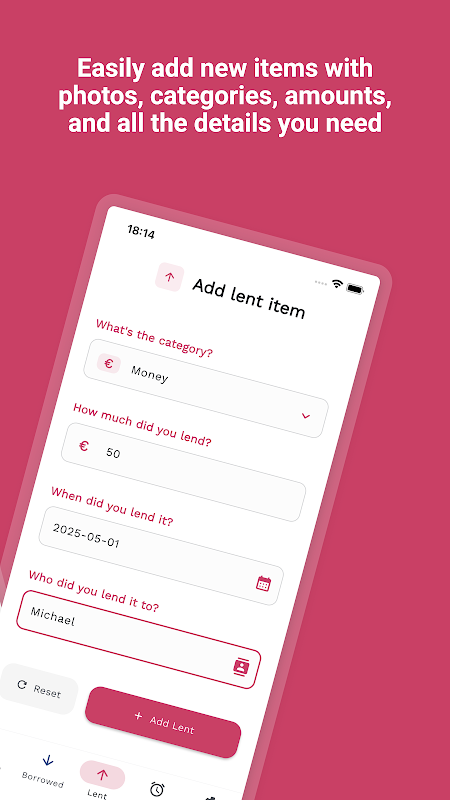 친구에게 빌려준 50달러, 좋아하는 책, 이웃에게 빌린 값비싼 도구 등 무엇이든 Borrowed는 한곳에 정리해줍니다.