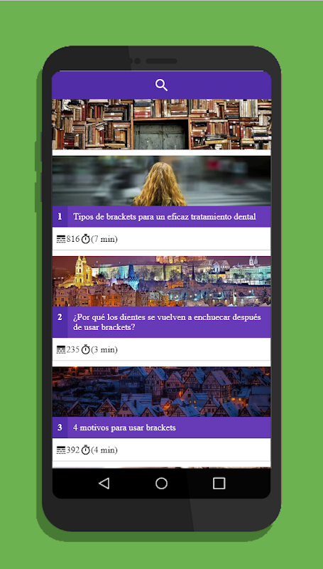 검색 엔진 옵션이있는 기사 목록이 포함 된 교훈적인 용도의 응용 프로그램입니다.