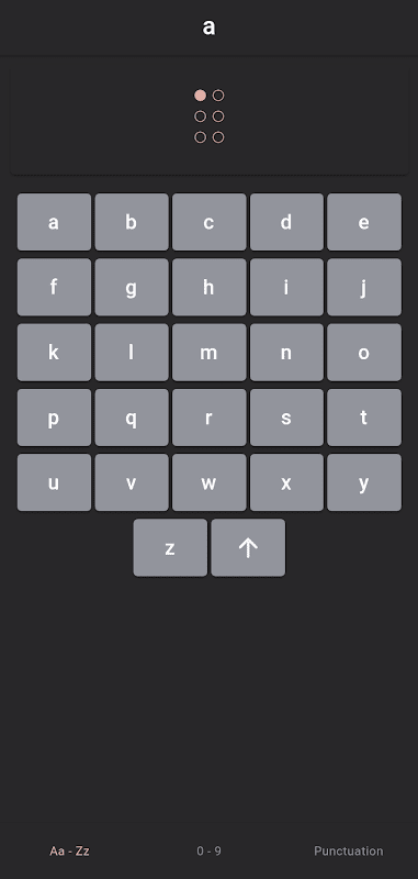 Easily look up Braille letters (Aa - Zz), numbers (0 - 9), or common punctuation marks.