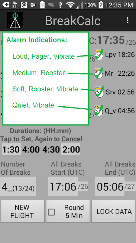 자동으로 데이터를 새로 고칠 이전의 비행 데이터를 사용할 수있는 가능성을 제거하기 위해 "새 비행"을 제안합니다. BreakCalc 정보는 전원을 껐다 다른 앱 사용을 통해 지속됩니다.