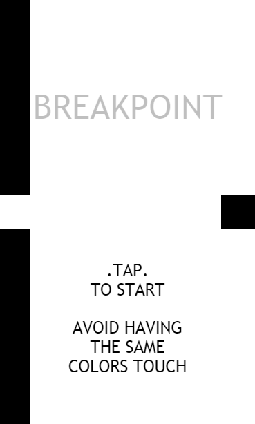 Taking a simple approach to the double fall genre (controlling two sides to avoid collisions), Breakpoint busts out of the norm with twin turbo controls, a score timer measured in seconds, and the end of the world to deliver on a simple promise - retrying a botched game over and over until you rage quit over the simplicity of the whole thing. The rules are simple, tap on the white or black block side to swap walls while avoiding the same colors, lose when white touches white, or black touches black.