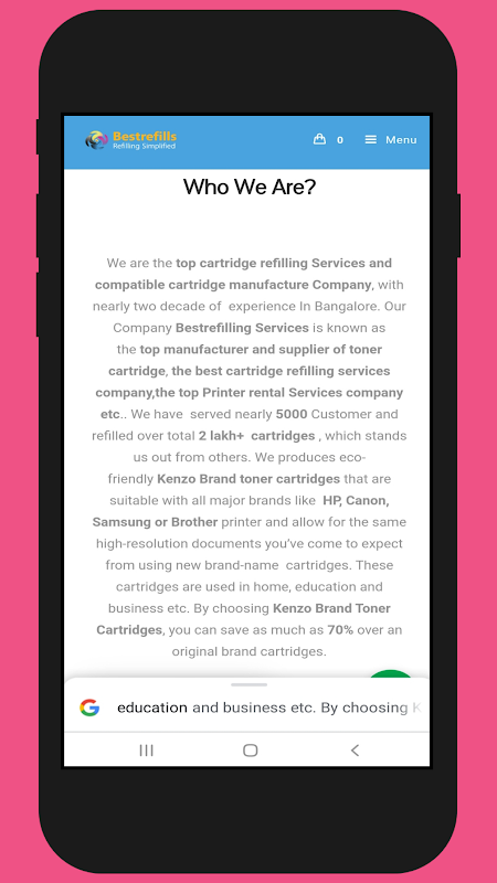4325명 이상의 고객에게 서비스를 제공하고 2 Lakh 카트리지가 매립되지 않도록 절약한 경험이 있는 당사는 국내 최초이자 아마도 유일한 조직화된 리필 서비스 제공업체라고 자부합니다. 전문 팀과 고도로 훈련된 기술자가 관리하며 카트리지를 처리할 수 있는 최첨단 장비도 보유하고 있습니다. 당사의 9단계 프로세스와 발송 전 카트리지마다 엄격한 테스트를 통해 정품 카트리지와 동등한 품질 및 신뢰성 표준에 도달할 수 있습니다. 우리의 재구매 고객은 "무조건" 교체 보증을 보증할 것입니다. 우리의 고객은 가정 사용자부터 대규모 다국적 기업까지 다양합니다.