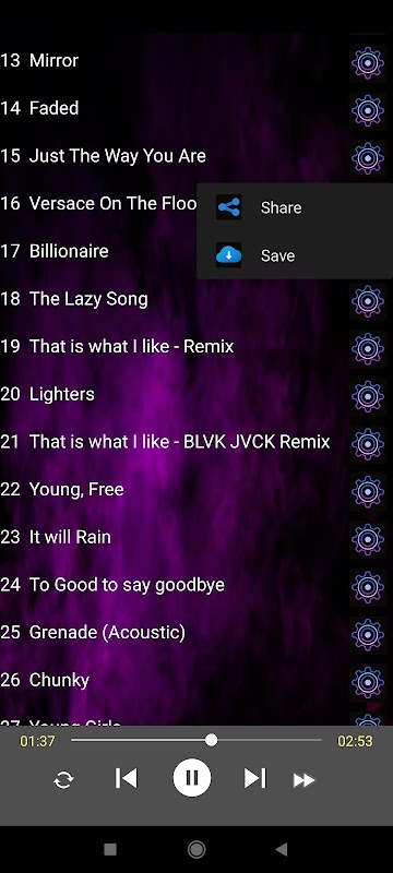 우리는 모든 노래를 고품질로 추가했습니다. 인터넷 없이도 완전히 들을 수 있으며 사용하기 쉬운 기능이 있습니다.