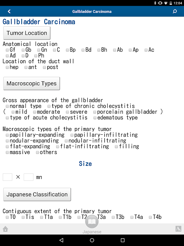 cancers : 3rdEnglish edition established by the Japanese Society Hepato-Biliary-Pancreatic Surgery. The App contains check list to evaluate the cancer stage by entering T, N, M into the calculator, and would also enable to keep your record by using the email function . The app will help your daily practice more sufficient.