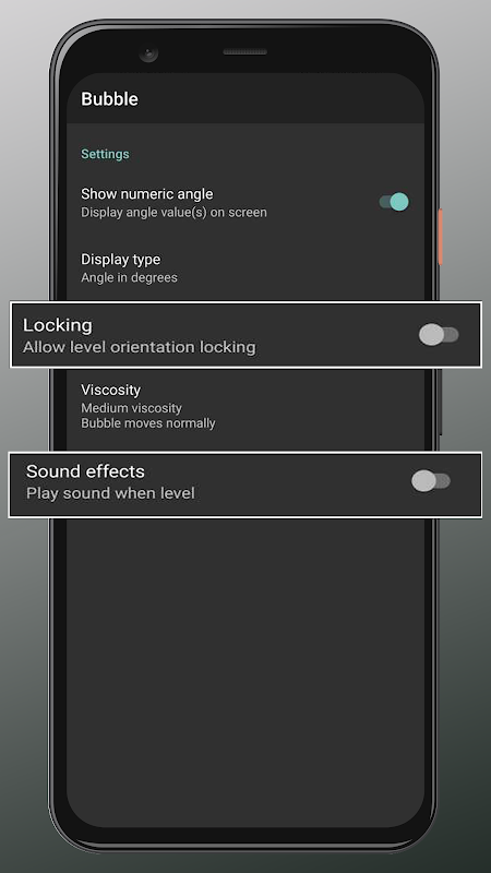 - 버블 레벨링 앱에는 음향 효과가 포함되어 있습니다.