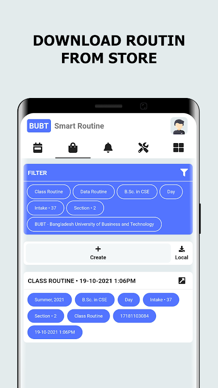 BUBT Smart Routine은 BUBT(Bangladesh University of Business & Technology)의 학생들을 지원하기 위해 Imam Hossain 박사가 개발한 교육용 응용 프로그램입니다. 이것은 비공식 안드로이드 응용 프로그램이며 학생들에게 다가오는 수업과 시험에 대해 알리기 위해 개발되었습니다. 프로그래밍에 바쁘거나 화가 난다면 이 앱이 수업과 시험을 기억하는 데 많은 도움이 될 것이라고 생각합니다.