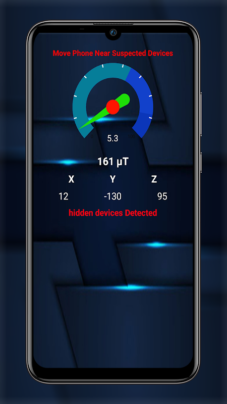 It Analyses the Magnetic Field Radiations from its environmental factors. At the point when this matches the approximate estimation of Camera or Electronic Device, the app gives visual caution to the client.