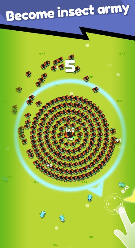 다른 곤충 부대를 무찌르고 가장 큰 곤충 부대가 되십시오