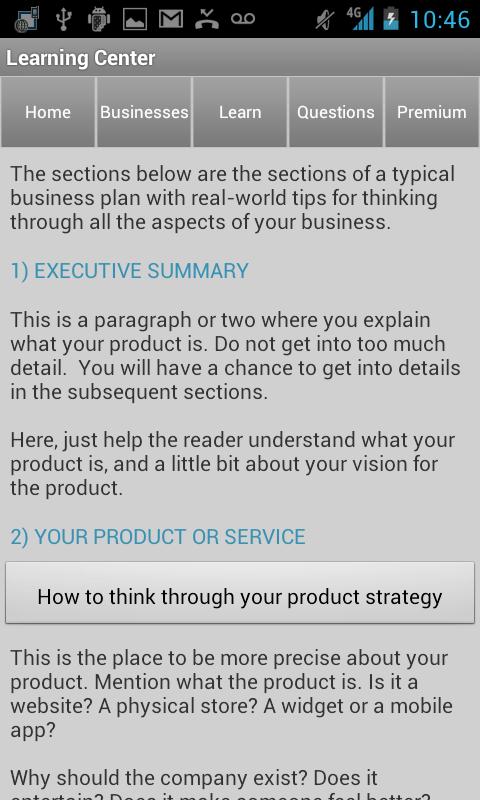 3) Ask questions about your business plan to our entrepreneur community and get help from your fellow small business owners. And if you want expert help, please get our premium app where we offer professional help with your business plan.