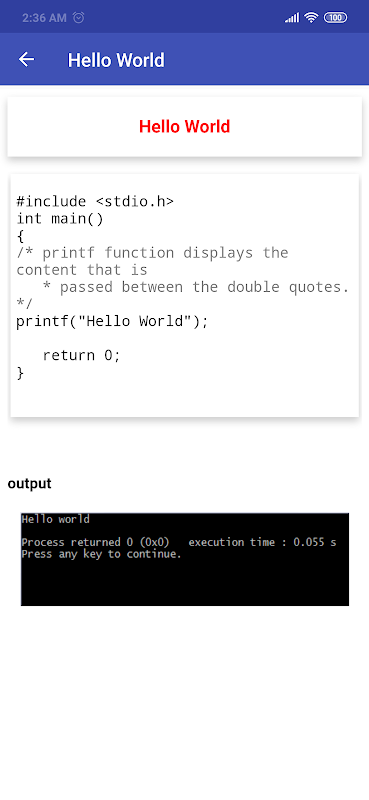 C 프로그래밍 자습서 앱 인터페이스는 청소년의 프로그래밍 기술을 개발하기 위한 모든 개념과 프로그램을 제공하는 매우 사용자 친화적입니다. 앱 언어는 배우기 쉽습니다. 프로그래밍을 시작하려고 할 때 C 언어는 모든 프로그래밍 언어를 시작하는 가장 좋은 옵션입니다. 프로그래밍 능력을 키웁니다. 쉽게 학습할 수 있도록 콘텐츠를 제공합니다.