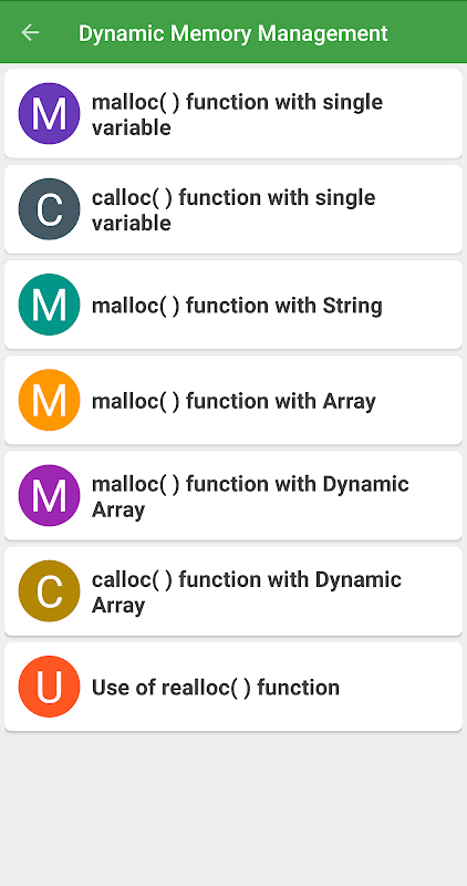 C 프로그램 : 350 + C 예제는 매우 간단한 사용자 인터페이스를 가지고 있습니다. Play 스토어에서 가장 좋은 앱을 찾을 수 있습니다. 응용 프로그램을 설치하고 열면 모든 기본 챕터가 앞에 있습니다. 모든 장을 클릭하면 내용을 볼 수 있습니다.